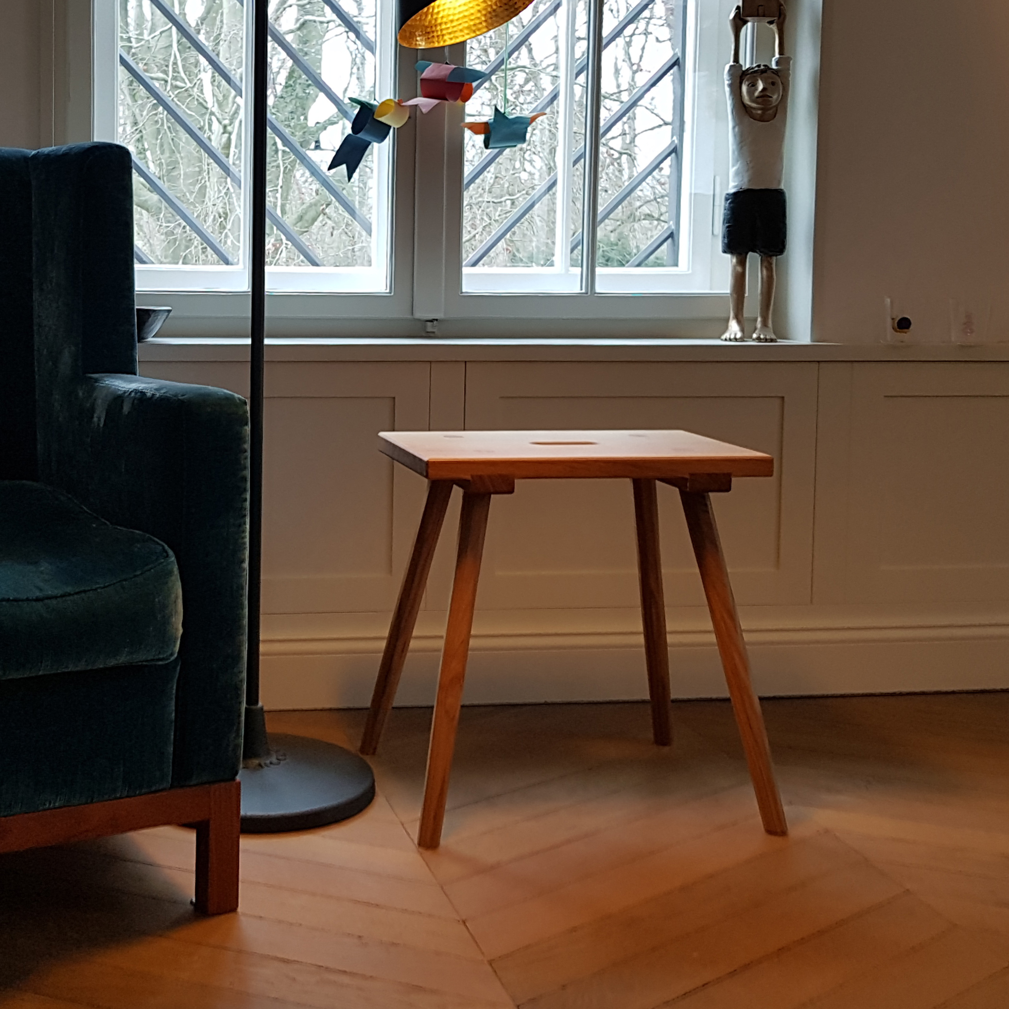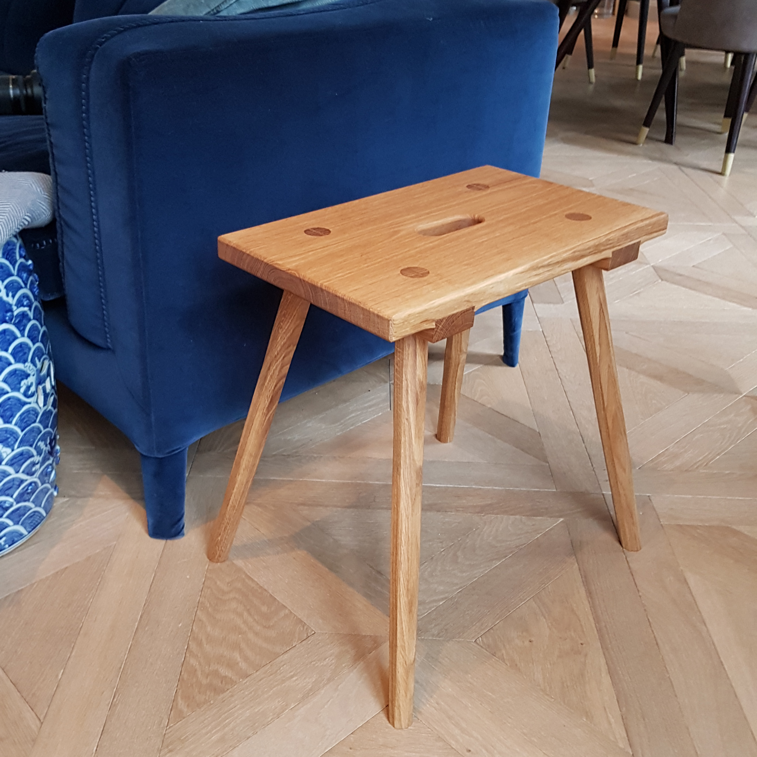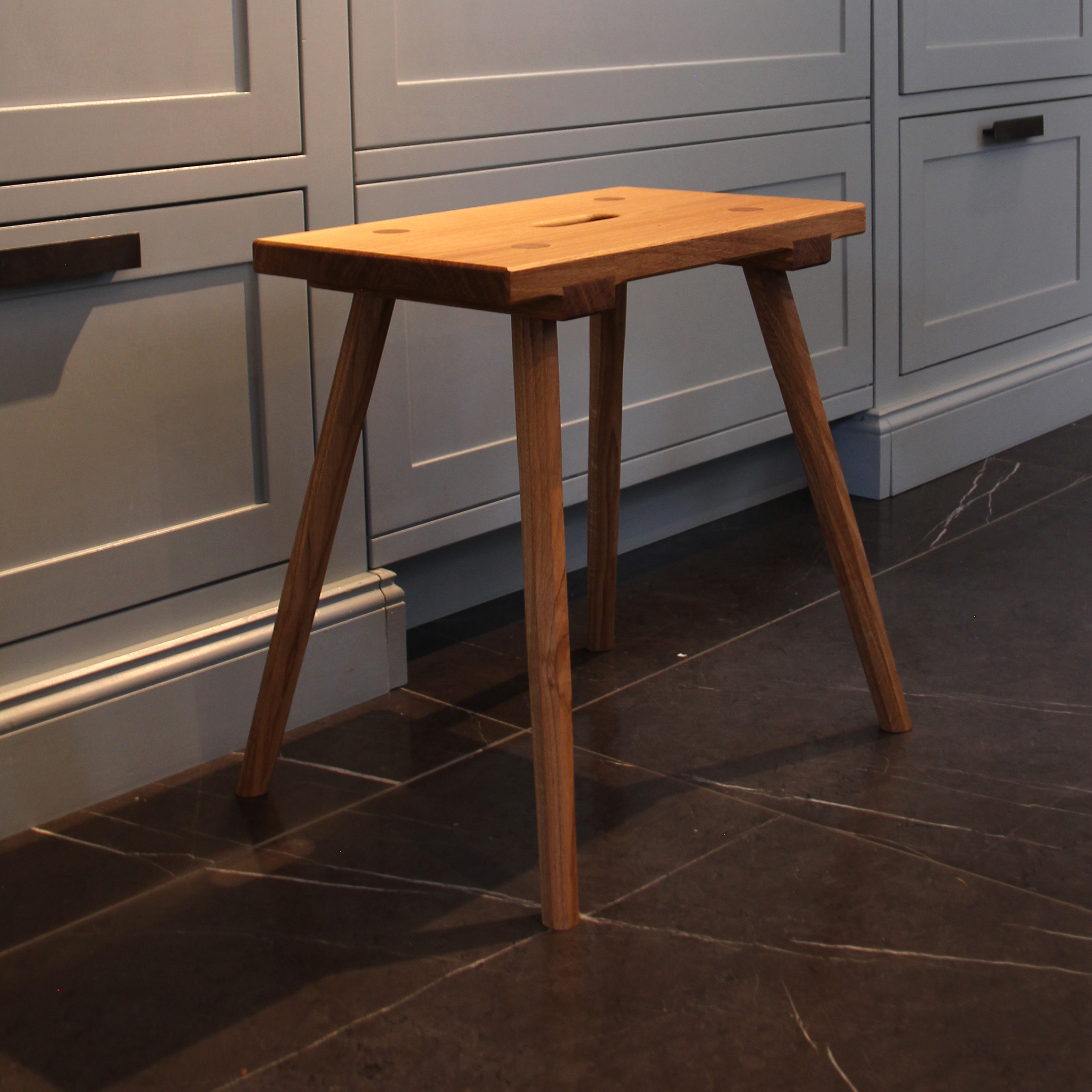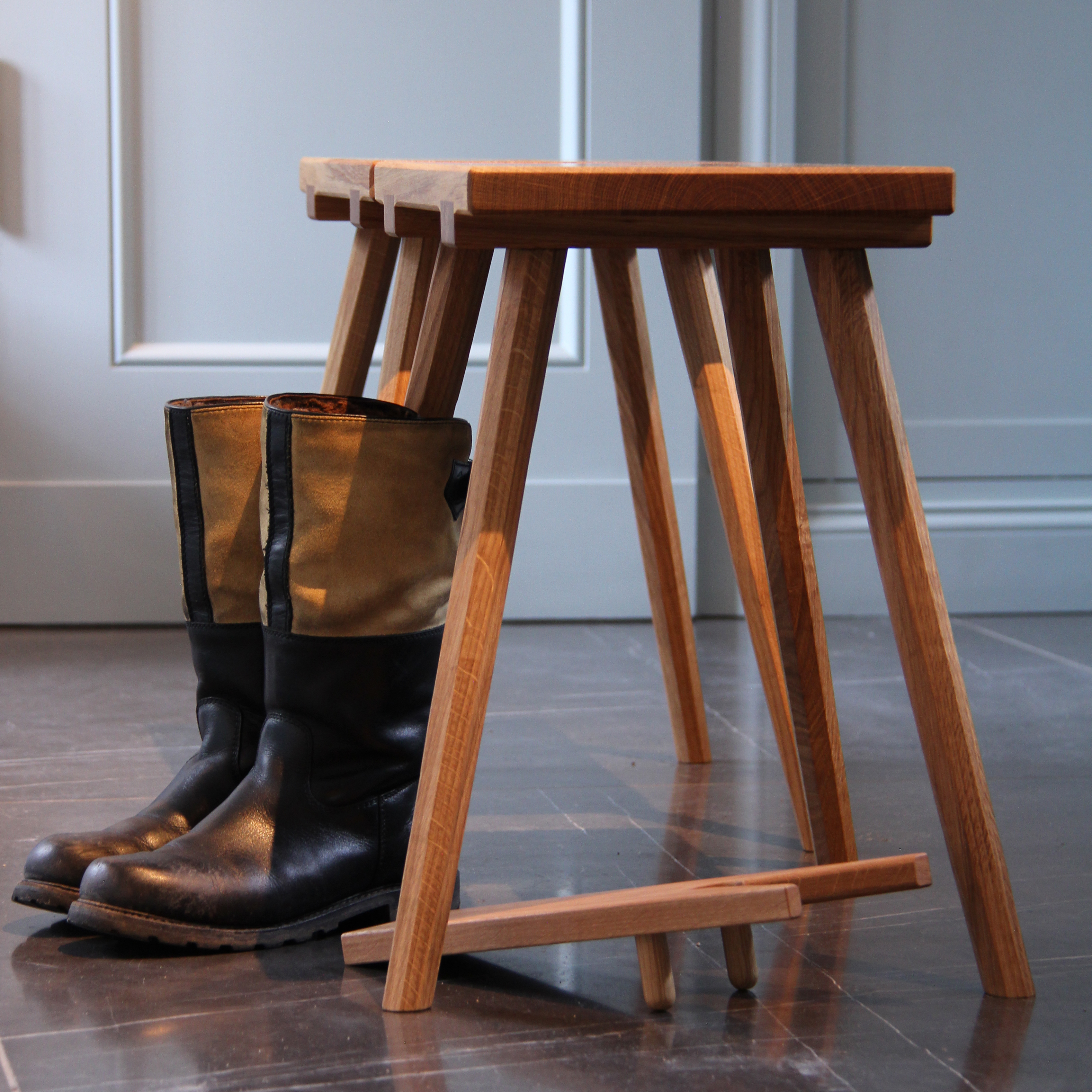 Unser traditionell hergestellte Schemel, der als perfekter Hocker oder Bestelltisch funktioniert, findet überall seinen Platz und ist zur Stelle, wenn er gebraucht wird. Aus regionaler Eiche, klassisch und handwerklich hochwertig gefertigt. Die vier, jeweils achteckigen konischen Beine werden traditionell in die massive Sitzfläche eingelassen und geleimt. Dann gekeilt und geschliffen um eine langlebige Verbindung herzustellen. Auf der Unterseite der Sitzfläche sind Gratleisten gezapft, was verhindert, dass sich der Hocker verzieht. Seit vielen hundert Jahren werden Stabellen, Schemel oder Hocker so hergestellt und haben sich als so gut wie unverwüstlich bewiesen. Wer einen solchen Hocker besitzt möchte ihn nicht mehr missen.